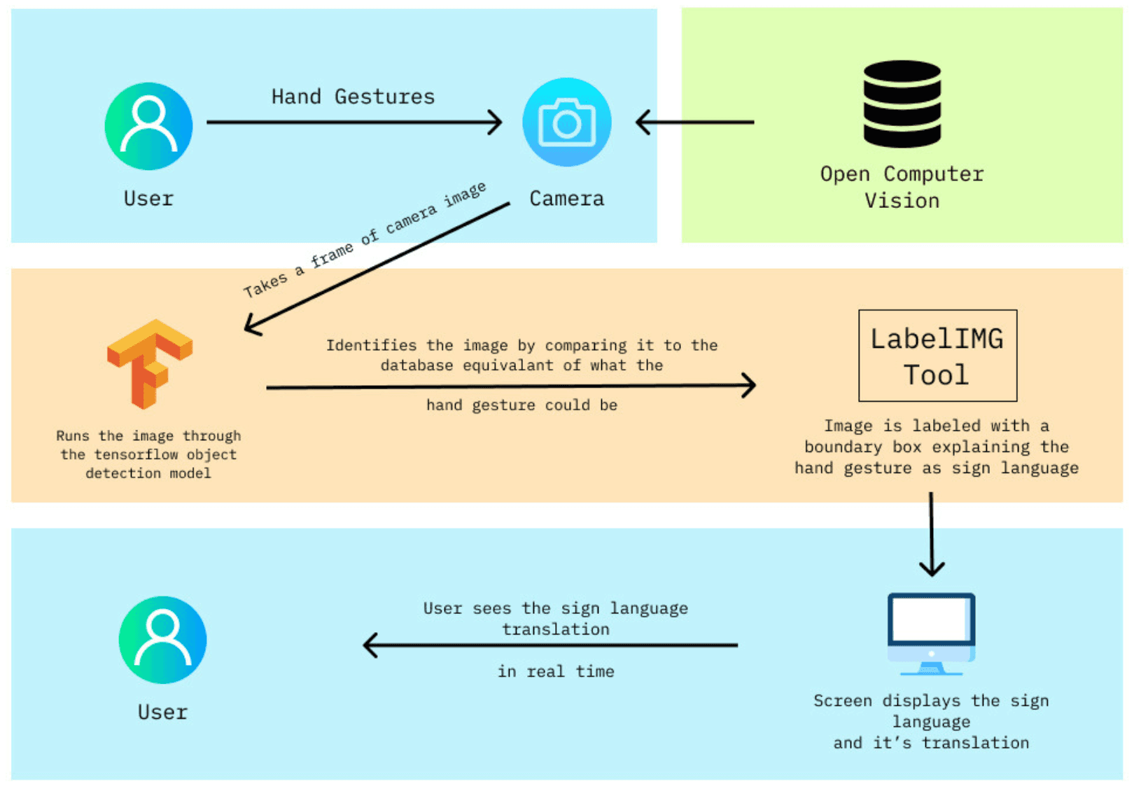 For the prototype, we decided to code for specific words - Hello, Yes, No, Thank you & I love you.