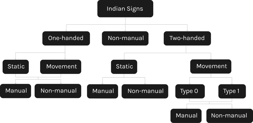 Understanding the scope of the ISL was essential to get a sense of what we were tackling. The language is broken down into - plain alphabet, words (single-handed, double-handed), static and movement-oriented signs, and a lot more.